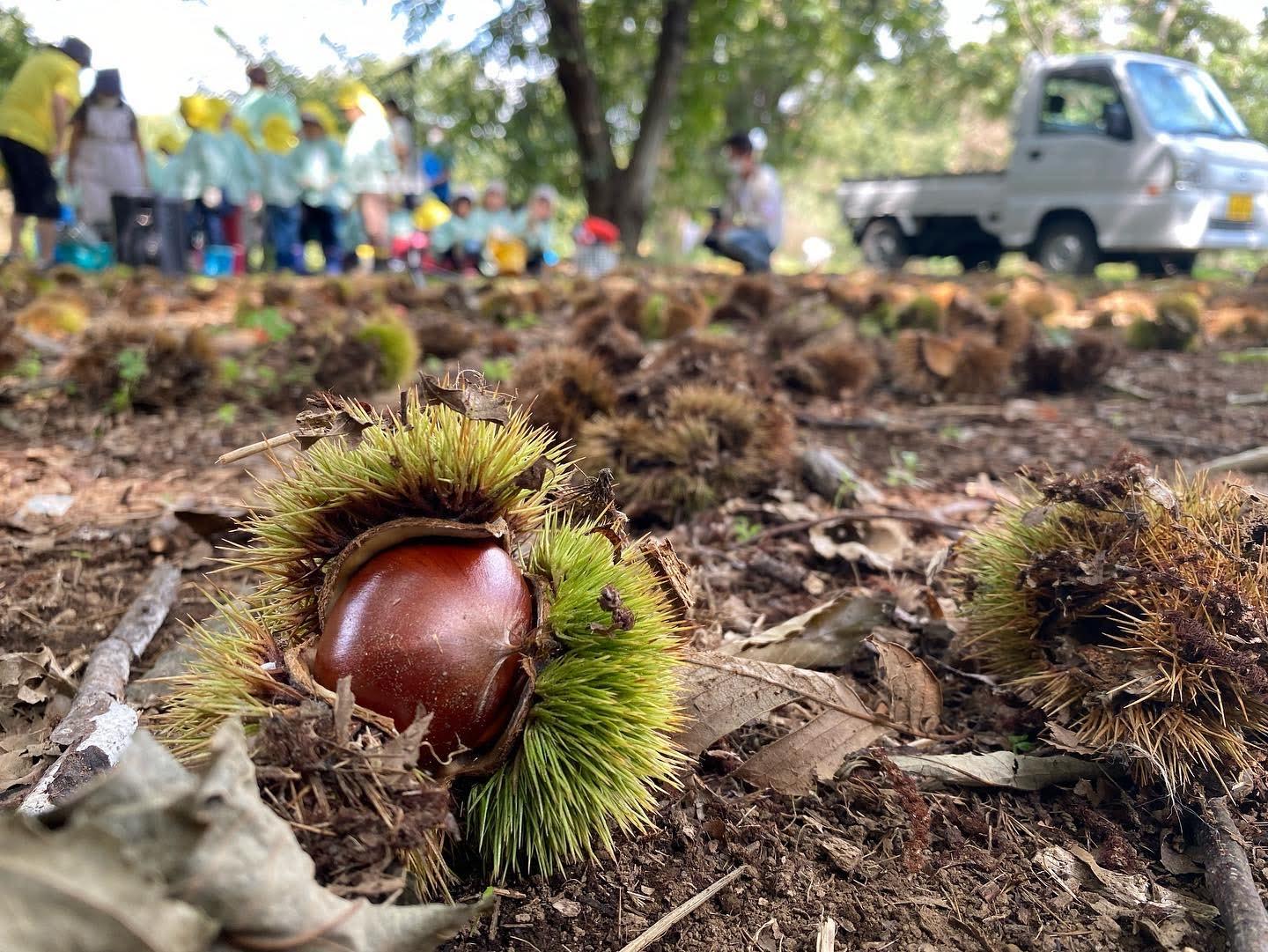 諸川にある「丸太園」さんに くりひろいに行きました。